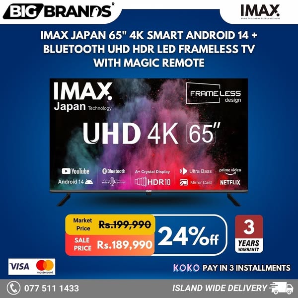 #BigbrandsLK #SriLankaElectronics #SmartTVsLK #4KTVSriLanka #TVSaleSriLanka #SmartTVDeals #ElectronicsSriLanka #TVShoppingLK #HomeAppliancesLK #TrustedBrandsLK #CompanyWarranty #TVOfferLK #TechDealsLK #BuyTVSriLanka #BestTVPrices #GenuineWarrantyLK #TVShopOnline #TVPromoLK #SmartHomeLK #TVSriLanka #Abans #SingerSriLanka #LGTVLK #SamsungTVLK #TCLSriLanka #HisenseSriLanka #Innovex #AIWASriLanka #IMAXTV #MIPlusTV