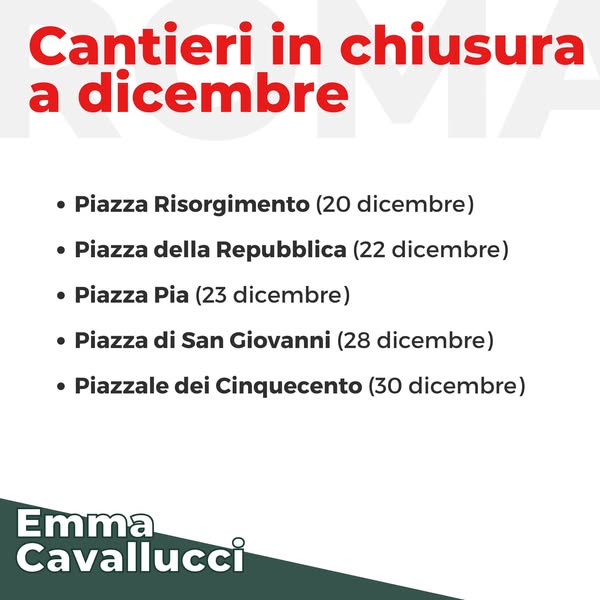 ps: il 20 si inaugura piazza Risorgimento, il 22 piazza della Repubblica, il 23 piazza Pia, il 28 piazza di San Giovanni e il 30 piazzale dei Cinquecento. Ricordo poi che molti interventi giubilari, può sembrare strano ma è così, non hanno mai avuto come scadenza la fine del 2024 ma saranno realizzati è conclusi nel 2025 e 2026, vedi il ponte dell'industria.