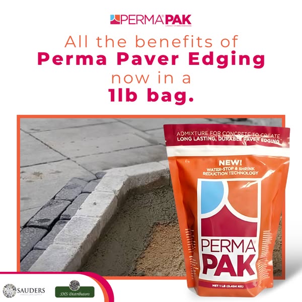 Perma PAK is a blend of five admixtures designed to be mixed with concrete on-site. It enhances paver edging by increasing flexural strength, improving water resistance, and reducing voids for longer-lasting concrete. Perma PAK helps reduce shrinkage and cracking, enhancing durability. The product is easy to mix and applies quickly, offering efficient and long-lasting results. Recommended for use with 3000 psi or greater concrete. Full details, including mixing instructions and product yields, are available on the SHS Distributors website.