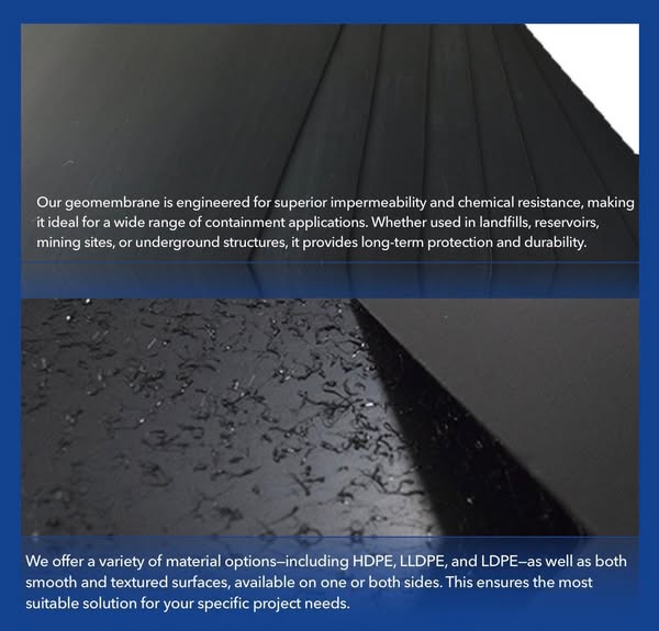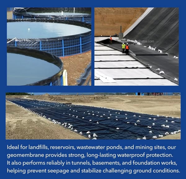 搜索关键词 HDPE Geomembrane, Geosynthetics Manufacturer, Factory Price, China Manufacturer, Waterproofing Solution, Geosynthetic Material, Civil Engineering, Construction Material, Erosion Control, Environmental Protection优势 Direct factory price,Fast response,Free samples,20+ years experience,Trusted supplier,Exported to 70+ countries