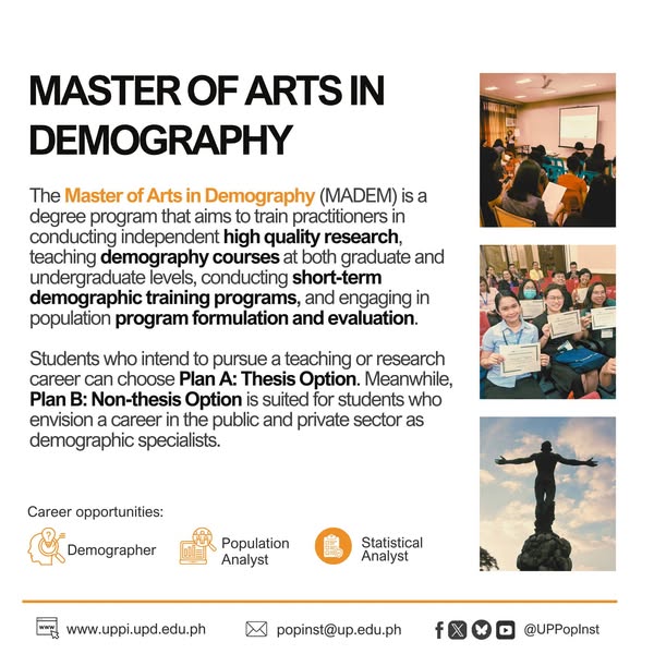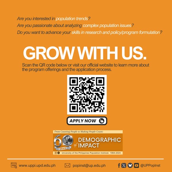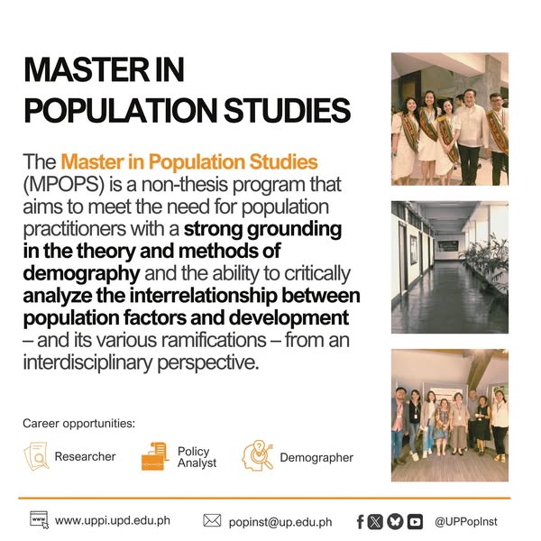 The University of the Philippines Population Institute (UPPI) is now accepting applications for the following graduate degree programs for the Academic Year 2025-2026: