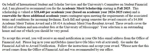 • University of Mississippi: Học bổng 28,440 USD/năm – Còn lại: 20,772 USD/năm