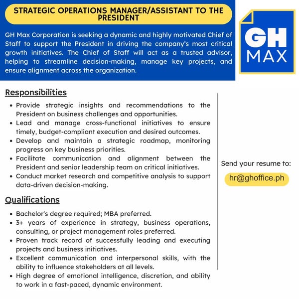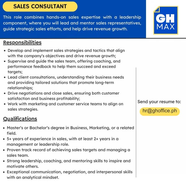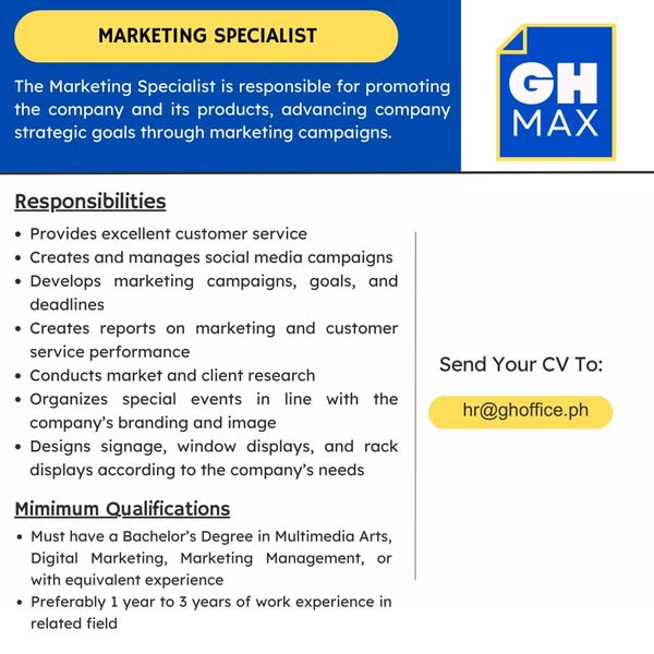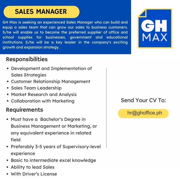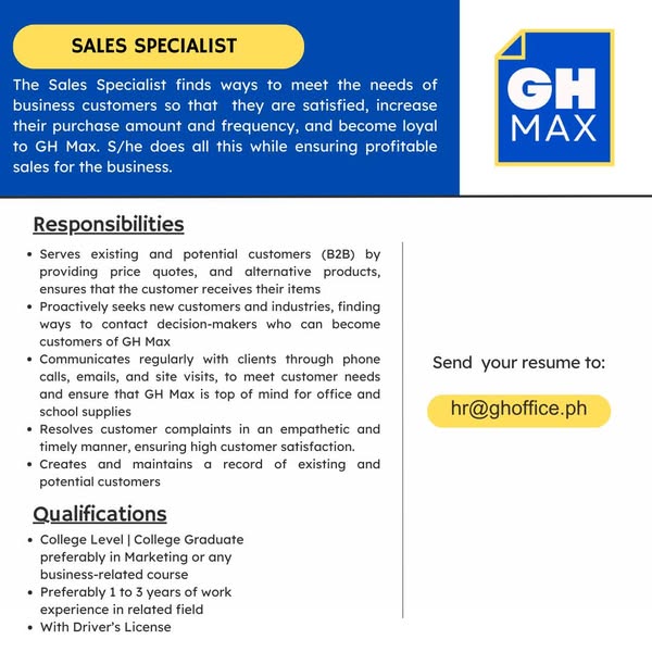 For Interested applicants, you can send your resume to our email "hr@ghoffice.ph" or submit your resume to our physical store at Monteverde Avenue, Davao City, in front of The Crazy Bite Co