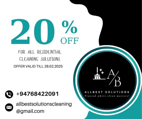 搜索关键词 deep cleaning service, home cleaning, residential cleaning, Sri Lanka cleaning, Fresh Start 2025, spotless space, allbest cleaning services, HomeWaterproofing, CustomCleaningServices, healthy home优势 Fresh and clean home,Reduces future maintenance,Stress-free upkeep,20% discount