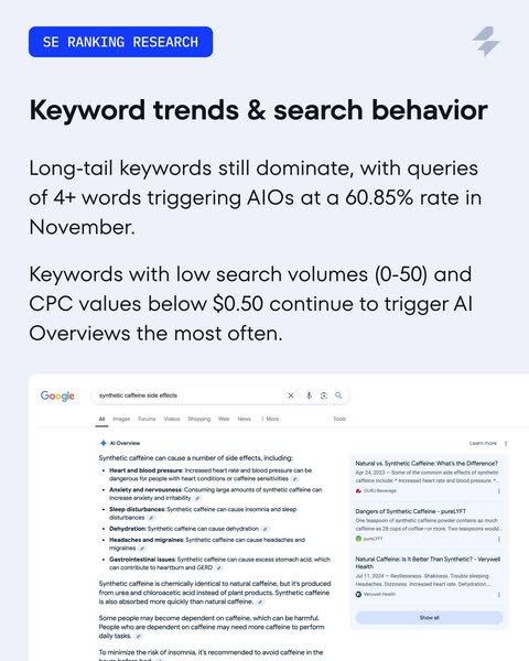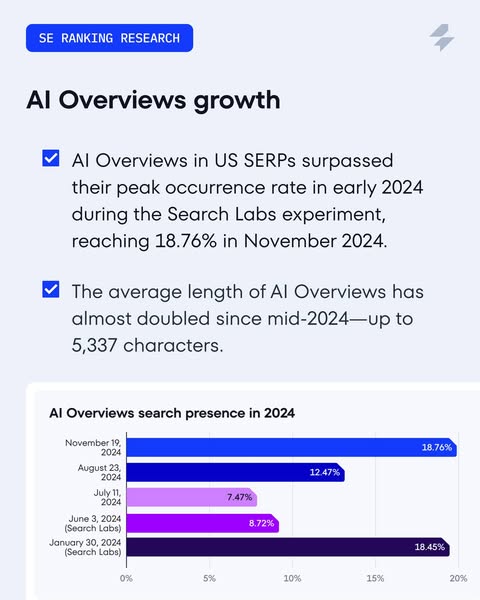搜索关键词 SE Ranking, AI Overviews, SEO trends, search engine optimization, SEO predictions, 2025 SEO, AI search, search analysis, keyword research, website ranking优势 Provides insights into AI Overviews impact on search.,Offers predictions for the future of AI Overviews.,Based on a comprehensive study.