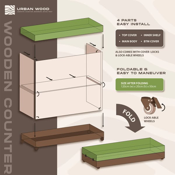 🚨 Collapsible / Foldable Wooden Cart🌟 . ✨ Portable. Stylish. Functional. Your perfect stall for indoor and outdoor events is here! Whether you're at a trade fair 🛍, or hosting a pop-up shop 🧁, this cart is designed to make your business stand out.