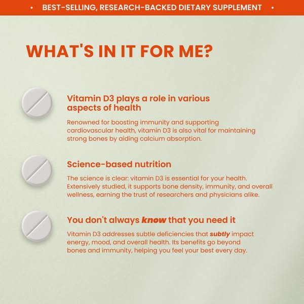 搜索关键词 Doctor's Best, Vitamin D3, 5000 IU, dietary supplement, bone health, immune support, vitamin deficiency, health benefits, healthy lifestyle, nutrition supplement优势 High potency,Doctor's Best brand