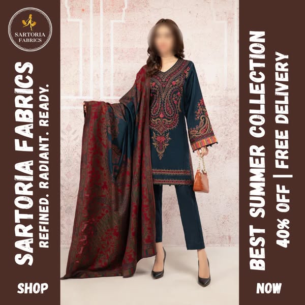 🌸 Elegant designs, premium fabric, and timeless embroidery – perfect for every occasion. 🎉 Enjoy 40% OFF + Free Delivery across Pakistan! 🛍️ Limited stock – order now and experience affordable luxury!