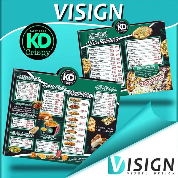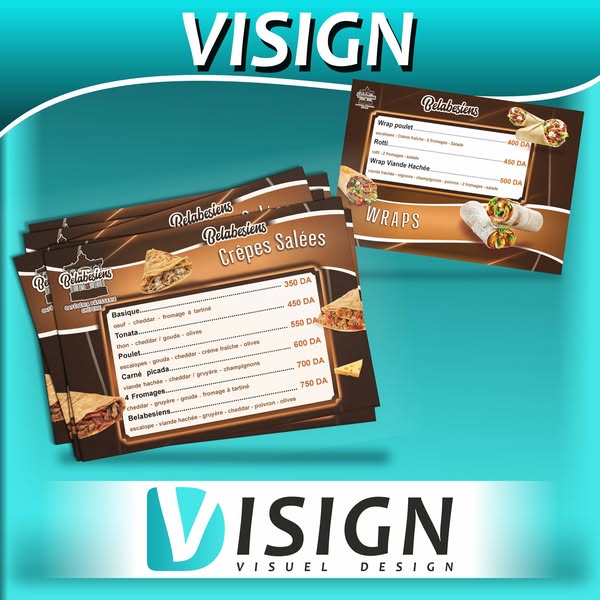 搜索关键词 menu design service, advertising agency Algeria, restaurant menu design, VISIGN advertising, promotional material design, local advertising solutions, marketing services Oran, business advertising Sidi-Bel-Abbès, professional menu design, digital printing services优势 Professional design services,Comprehensive range of advertising materials,Local presence in Sidi-Bel-Abbès and Oran