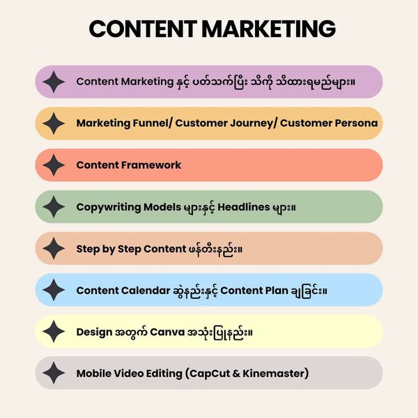 搜索关键词 Social Media Marketing, Facebook Ads, TikTok Marketing, Content Marketing, Digital Products Reselling, Myanmar, Telegram Ads, Online Business, Earn Money Online, Marketing Course优势 Comprehensive social media marketing training,Covers Facebook, TikTok, and Telegram,Includes digital product reselling strategies,Money-back guarantee,Lifetime access to course materials and updates,Provides access to a private group with hotline support.