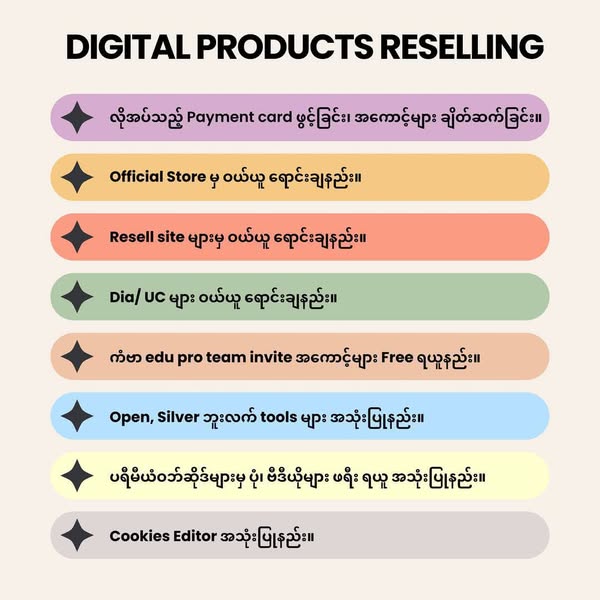 CapCut, Chatgpt, Spotify, Zoom, Canva, Telegram အစရှိတဲ့ Digital Products Subscription များစွာကို resell site, official store တွေကနေ ဈေးသက်သာစွာဖြင့် ဝယ်ယူရောင်းချနည်း။
