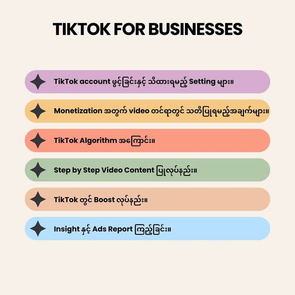 ဒီ course မှာဆိုရင် Monetization လျှောက်လို့ရတဲ့ TikTok account (Japan, US, UK) အစရှိတဲ့ အကောင့်ဖွင့်နည်း။