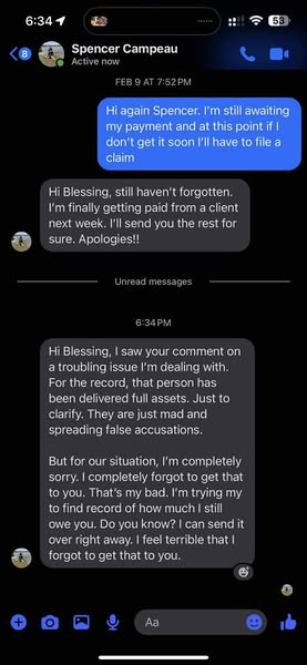 I sent this chump $3300 in Feb and this lady asked for $200 and he said he was in a hole financially !?!?!? Seriously!?!?