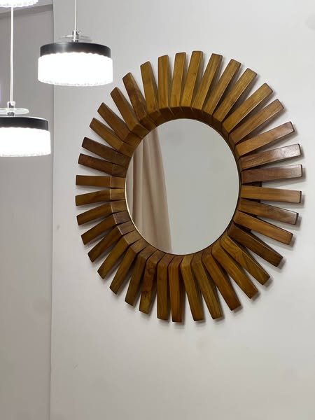 搜索关键词 handcrafted mirror, wanza wood, sunburst mirror, home decor ethiopia, ethiopian art, wall hanging decor, handmade furniture, wood works, biruk teferi, gift ideas优势 Handcrafted from solid Wanza wood,Timeless design,Perfect blend of art and function,Free delivery in Addis Ababa