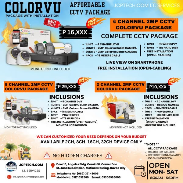 搜索关键词 CCTV package, Security System, CCTV installation, affordable CCTV, Home security, Business security, CCTV camera, free installation, Davao City, security solutions优势 Affordable Packages,Customized Packages,Free Site Survey and Consultation,Free Online Configuration/Viewing,Free Installation (Open-Cabling),One Year Warranty,After Sales Guarantee,Budget Friendly