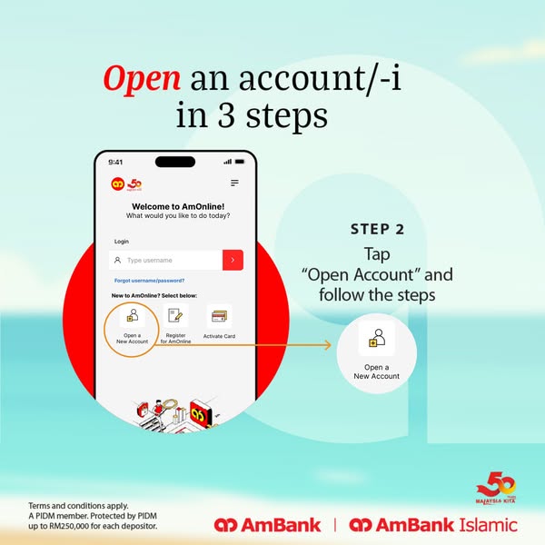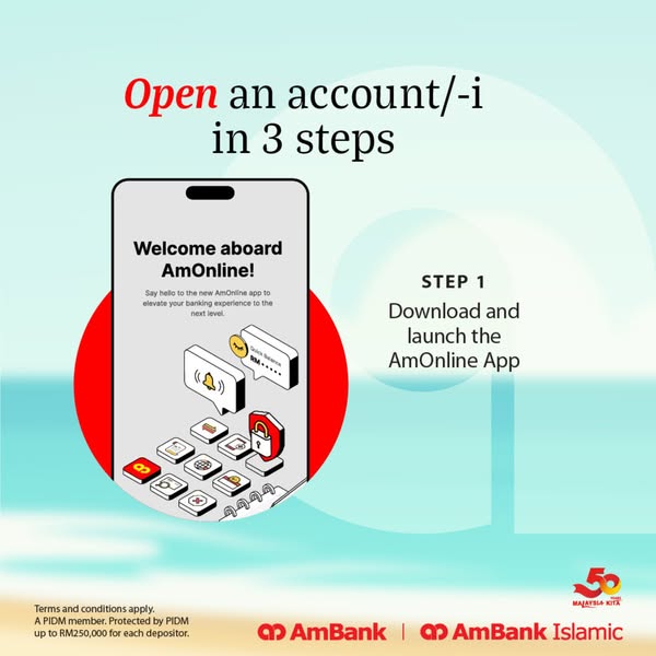 ⚠️ Kaki们无需到AmBank分行排队等候办理,通过AmOnline App 线上开设账户就OK了