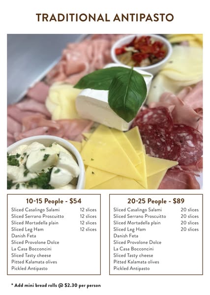 搜索关键词 Christmas Catering, New Years Catering, Italian Food, Cafe Va Bene, Campbelltown Catering, Holiday Catering Services, Adelaide Catering, Family Catering, Catering Boxes, Order Catering优势 Convenient pick-up and delivery options,Variety of catering boxes,Italian owned and operated since 1994,Long-standing family ownership