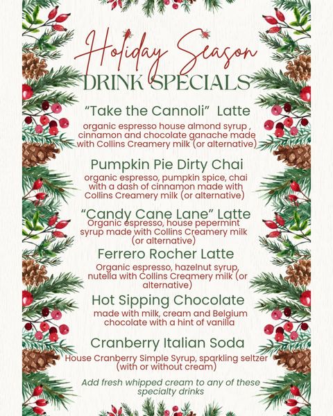 搜索关键词 holiday baking, christmas orders, local bakery, sweet treats, Sherrill NY, holiday menu, online order, first come first serve, December hours, special offers优势 Convenient online ordering,Special holiday menu,Local shop location