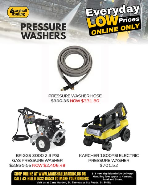 #MarshallTrading #buildingwithyou #everydaylowprice #pressurewasher #dewalt #makita #generac #ingco #barbadospressurewashing #barbados #cleaning #cleaningservice #barbadossale #sale