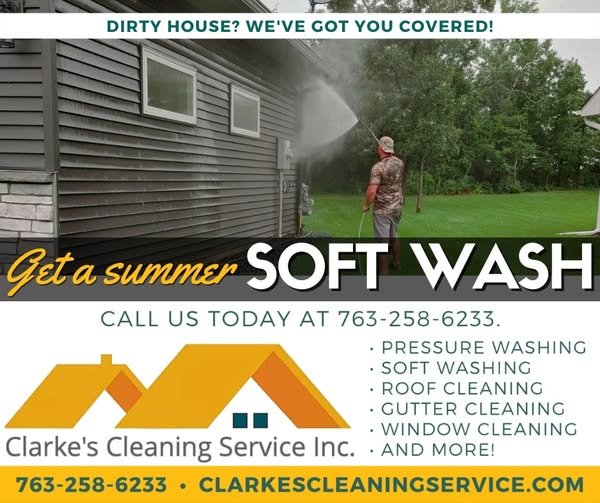 搜索关键词 soft washing, home cleaning, mold removal, mildew removal, algae removal, exterior cleaning, safe cleaning, roof cleaning, siding cleaning, Clarke's Cleaning Service优势 Safe for all surfaces,Kills mold and bacteria at the root,Keeps home cleaner, longer,Eco-friendly and biodegradable,Prevents regrowth