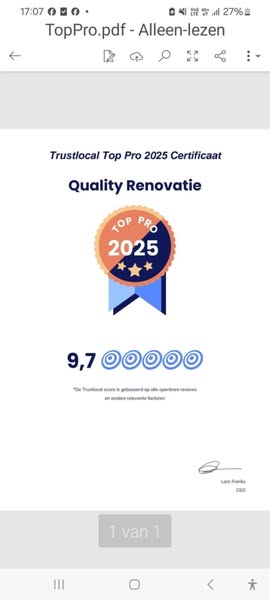 Langs deze weg willen wij onze Nieuwe Klanten Tom en Vrouw van harte bedanken voor hun vertrouwen in Quality Renovatie bv.