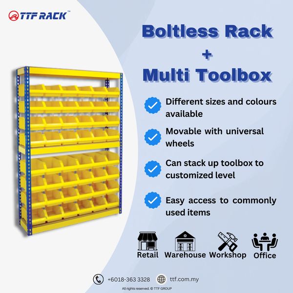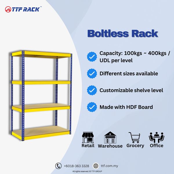 #TTF #TTFGroup #TTFRack #StorageSpecialist #RackingSystemMalaysia #BoltlessRackSeries #StorageRack #YellowBlueRack #IndustrialRack #StorageSolutions #IdeaforSpace #Rawang #Selangor #Johor #boltlessrack