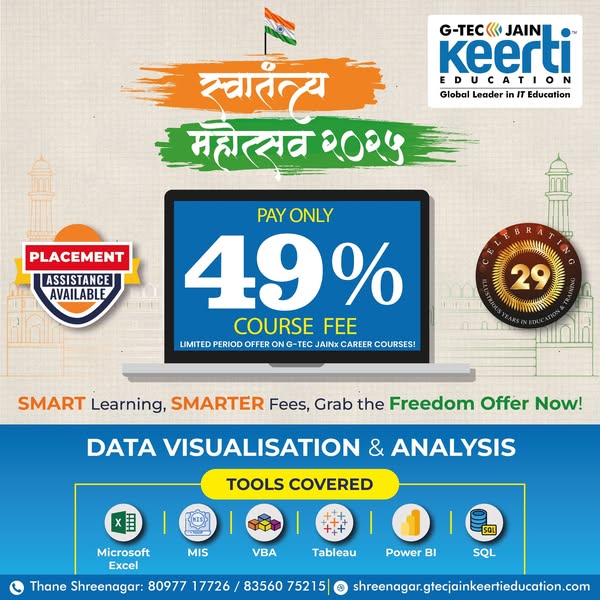 搜索关键词 skill development courses, data visualization training, SAP FICO course, vocational training institute, career growth skills, discounted education, thane education center, independent india learning, limited time offer, GTEC Jain Keerti优势 Discounted Course Fee (49%),Career Growth Opportunities,Relevant Skills Training