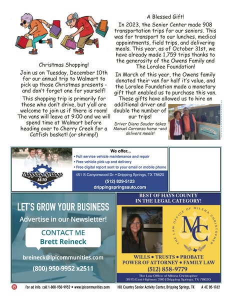 搜索关键词 senior center activities, December events, Dripping Springs TX, senior community, social events, senior menu, senior programs, community services, senior engagement, senior support优势 Social activities for seniors,Promotes community engagement,Provides information on available services