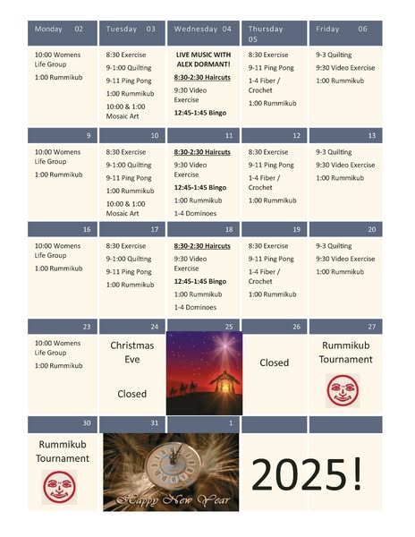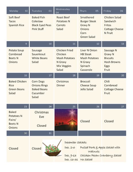 Hello Seniors. Check out our December menu and all the exciting events we have lined up this month! 🎉 Stay tuned for more updates and come visit us at: