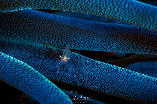 Cette magnifique crevette identifiée sans ambiguïté par notre expert J. POUPIN comme étant Palaemonidae Actinimenes ornatus. Bien qu'elle soit connue dans le sud-ouest de l'océan Indien, il s'agit tout de même d'un premier signalement pour Mayotte.