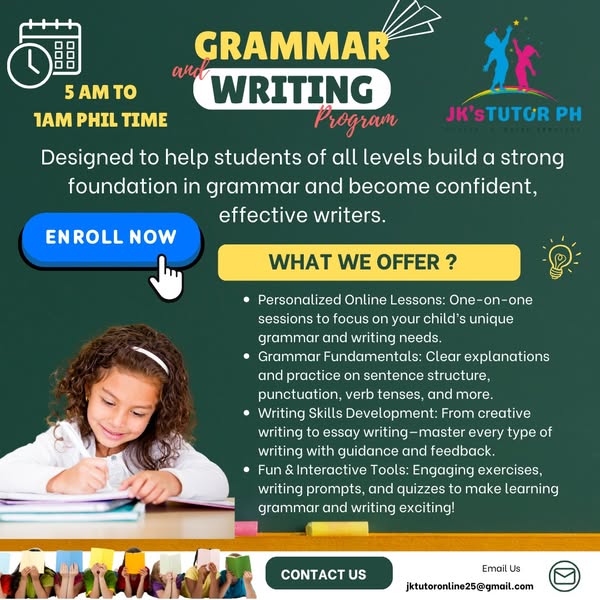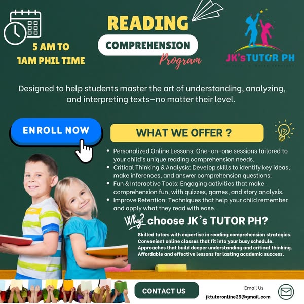 Looking for quality online tutoring in Reading, Math, Filipino Language, English Grammar and Writing, and Academic Assistance? JK's TUTOR PH is here to help your child succeed!