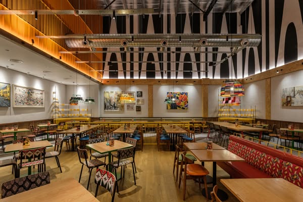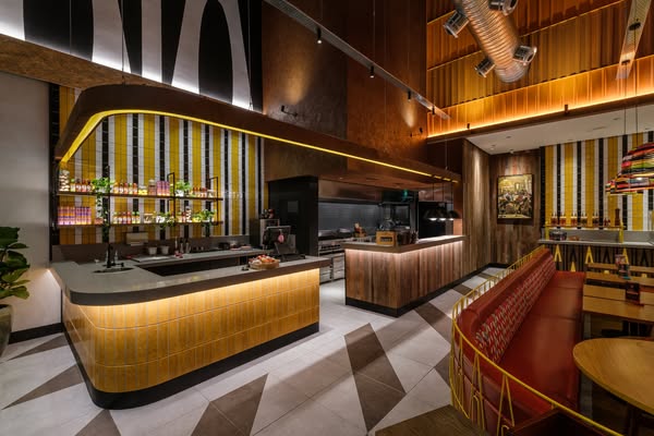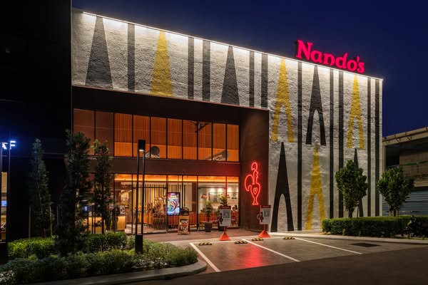 搜索关键词 Nando's Malaysia, Restaurant Interior Design, Linear Vista Design, Mural Design, Bangi Avenue Restaurant, South African Graphic Designer, Landmark Restaurant, Interior Architecture, Interior Decor, Restaurant Aesthetics优势 Striking mural design,Celebrates metallic bulkhead,Brings life to the building,Turned the restaurant into a local landmark