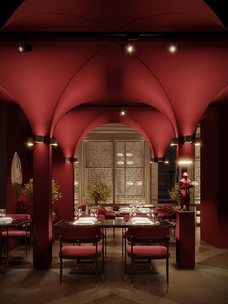 The shapes at Gent Steak are an exquisite architectural highlight, rich in mystery and classic elegance. Designed with high arches, it not only creates a sense of open space but also evokes the classic lines of British architecture. The lighting is thoughtfully arranged, casting light along curves and angles, creating artistic shadow effects that make the space captivating and filled with a detective-like atmosphere. The shapes are the key element that sets it apart, giving diners the feeling of stepping into the world of Sherlock Holmes.