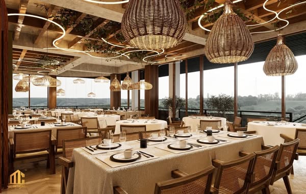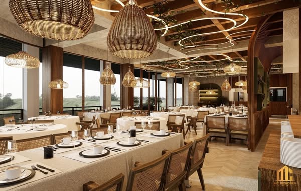 Walk into a serene dining retreat thoughtfully designed by MC Designer Studio. This elevated space perfectly balances modern sophistication with nature-inspired charm, creating an unforgettable atmosphere for every guest.