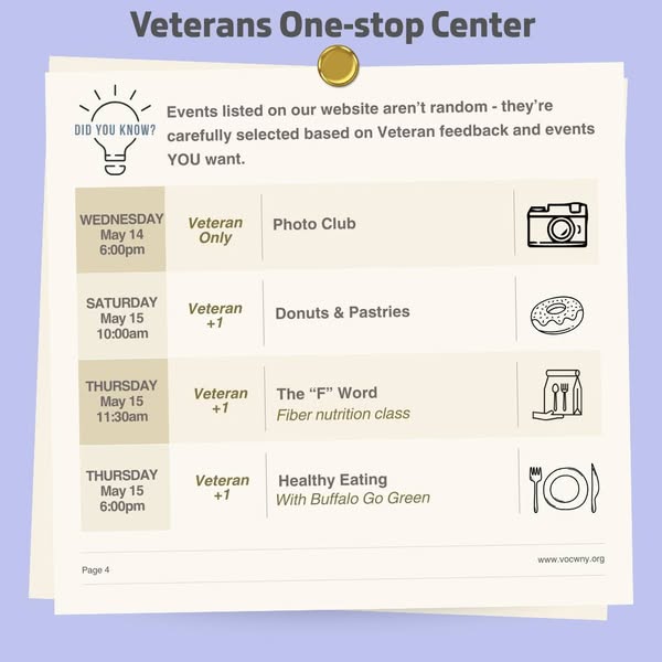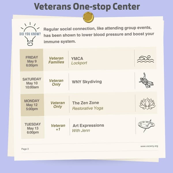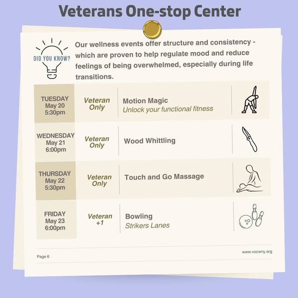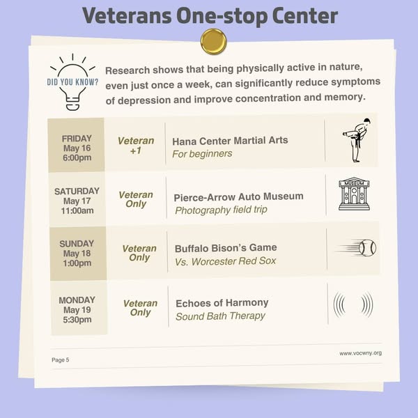 From outdoor adventures and group outings to creative workshops and relaxing wellness sessions — there’s something for every Veteran this month. 💬🧘♂️🎨🚶♀️