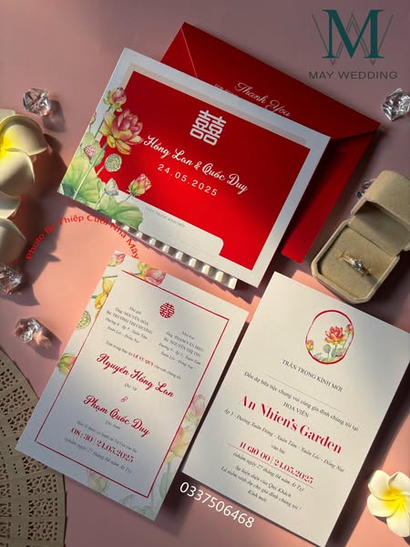 搜索关键词 wedding invitations, custom wedding, beautiful invitations, cheap invitation, high-end invitations, trang tri cuoi, đám cưới优势 Diverse range of wedding invitation designs,Customization options (photos, QR codes, maps),Fast printing and small quantity orders accepted,No shop logo printed on customer's invitations,Nationwide delivery with COD