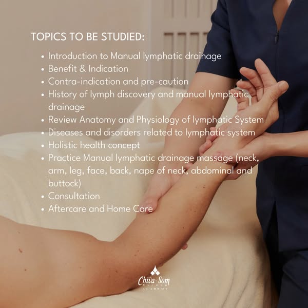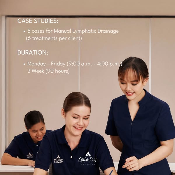 搜索关键词 Manual Lymphatic Drainage, Wellness Training, Chivasom Academy, CIBTAC course, Detoxification massage, Skin Health education, Spa Treatment course, Thai massage training, Massage Therapy certification, Beauty Therapy Academy优势 Effective therapy for lymphatic system stimulation,Enhances blood circulation,Promotes natural detoxification,Improves skin health,Provides deep relaxation and overall well-being,CIBTAC accreditation