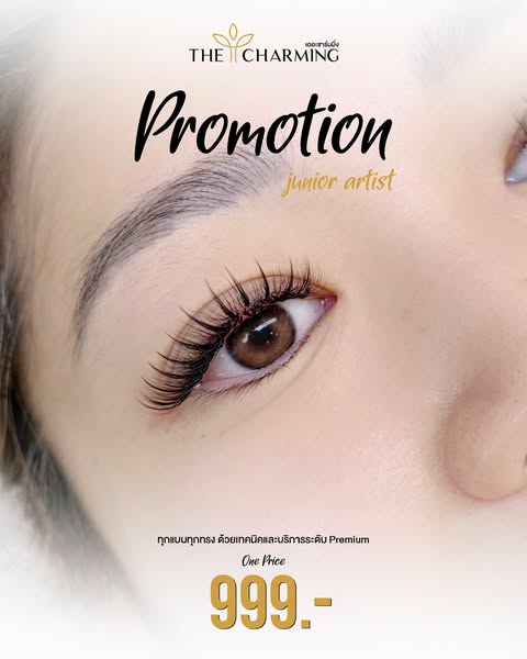搜索关键词 eyelash extensions, lash artistry, premium lash, beauty service, charming academy, junior artist lash, classic hybrid volume, signature wispy, custom lash design, affordable lash extensions优势 Affordable price (999 THB),Trained Junior Artists,Premium Materials,Custom Lash Design,Wide range of styles available