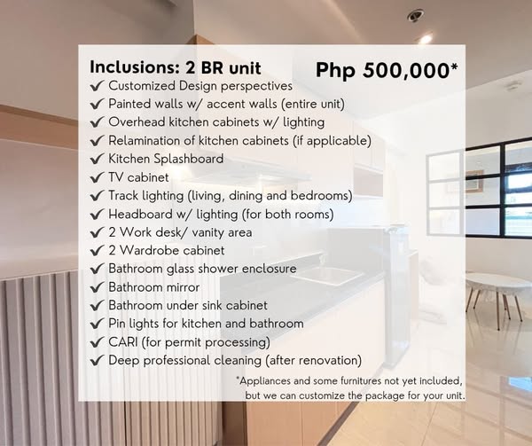 Unlock Your Dream Home! Move-in ready renovations tailored to your unique style. Where vision meets reality. Explore our stunning projects and start living your dream. Renovation package starts at P350,000 only!