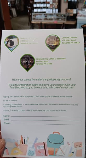 Central Bradford County Chamber of Commerce #ShopHop cards are here! Come grab yours and then visit each of the 9 participating businesses to get a stamp. You could win 1 of 9 $25 gift cards.