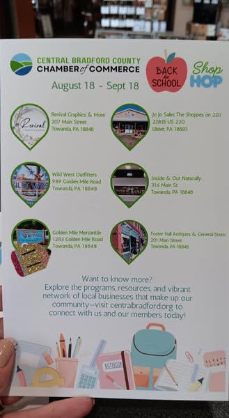 搜索关键词 local businesses, community event, gift card giveaway, Bradford County, ShopHop promotion, Golden Mile Mercantile, Towanda Pennsylvania, support local, win prizes, chamber of commerce优势 Supports local businesses,Chance to win gift cards,No purchase necessary