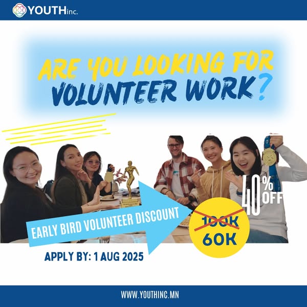 搜索关键词 volunteer membership, youth professionals, mongolia community, early bird discount, professional development, youth inc mn, community involvement, volunteer opportunities, 2025 membership, mongolian youth优势 Early bird discount,Opportunity to join a community,Professional development