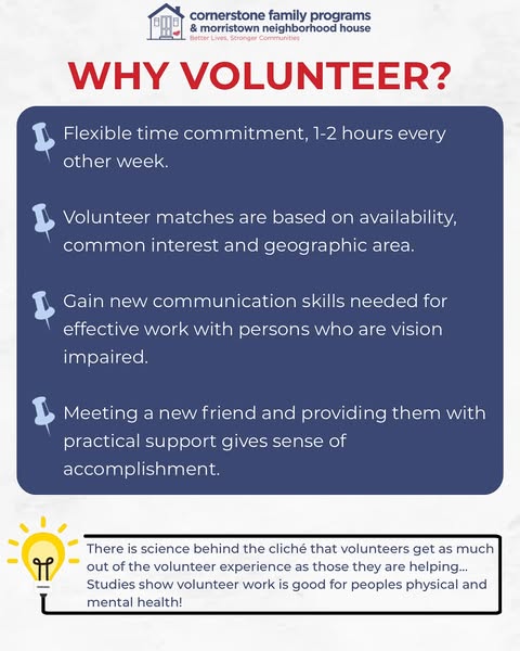 Looking for a new way to get involved in our community?🏠 Our Friends of the Blind program connects dedicated volunteers with individuals who are visually impaired — providing companionship, guidance, and a stronger sense of community💛