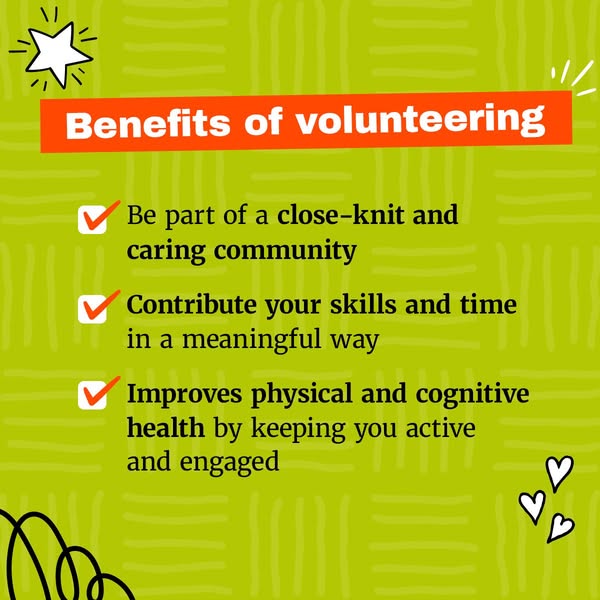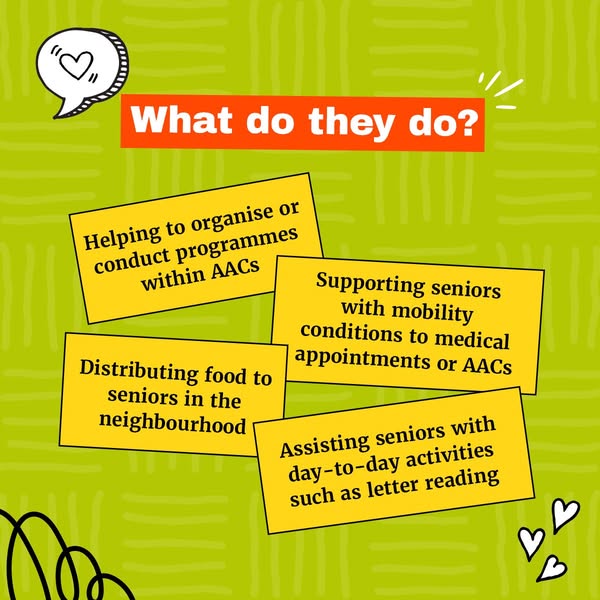 搜索关键词 volunteer opportunities, support seniors, active ageing, community service, singapore volunteers, make a difference, helping elderly, senior citizen support, silver generation, active ageing centres优势 Opportunity to make a difference,Join a community of like-minded volunteers,Support seniors at Active Ageing Centres,Help seniors stay active and engaged