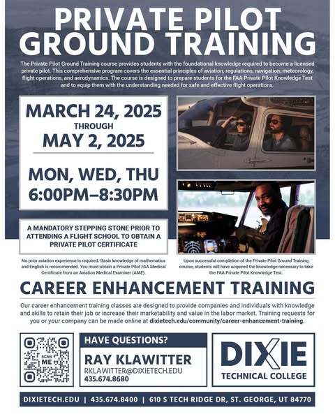 We’re excited to announce that we have teamed up with Dixie Technical College to provide ground school instruction for those looking to kickstart their aviation career.