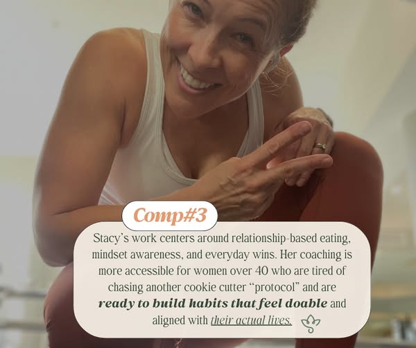 *I’m not pushing a protocol; I’m helping women rewrite their relationship with food, self-image, and wellness in a way that finally sticks.
