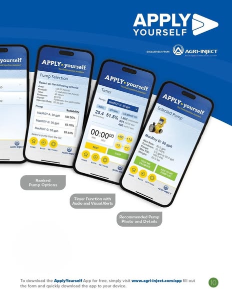Efficiency and accuracy are critical in agriculture, especially when selecting and calibrating injection pumps for your operation. Agri-Inject®'s Apply Yourself app takes the guesswork out of the equation, giving you complete control over your fertigation and chemigation systems.