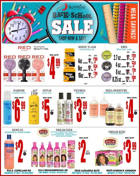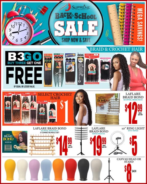 #BackToSchoolSale #HairDeals #WigSale #SupremeHairAndBeauty #BOGO #BeautySavings #DFWHairDeals