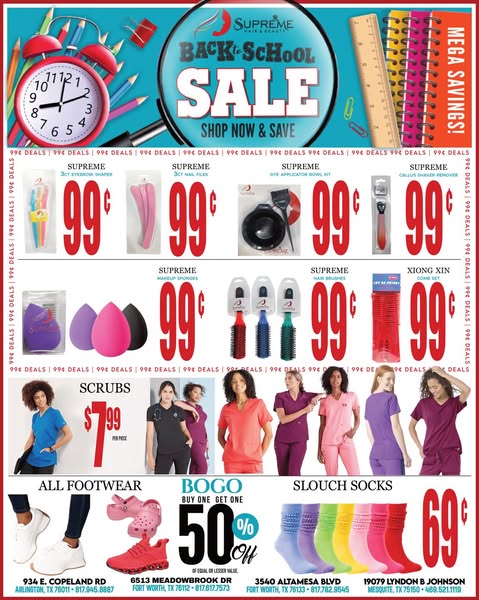 搜索关键词 back to school, hair deals, wig sale, beauty savings, DFW hair, Supreme Hair, beauty products, Texas stores, school sale, hair extensions优势 Back-to-School Discounts,Wide Selection of Hair & Beauty Products,Multiple Store Locations in DFW,BOGO(Buy One Get One) deals