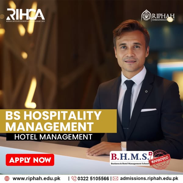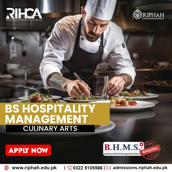 搜索关键词 Hospitality Management Degree, Bachelor Program, Riphah Institute, Culinary Arts Education, HEC Recognized, Pakistan Education, Higher Education Opportunities, Hospitality Career, On Campus Courses, Admissions Open优势 HEC-recognized BS degree,Essential skills for hospitality industry,Engaging and hands-on learning
